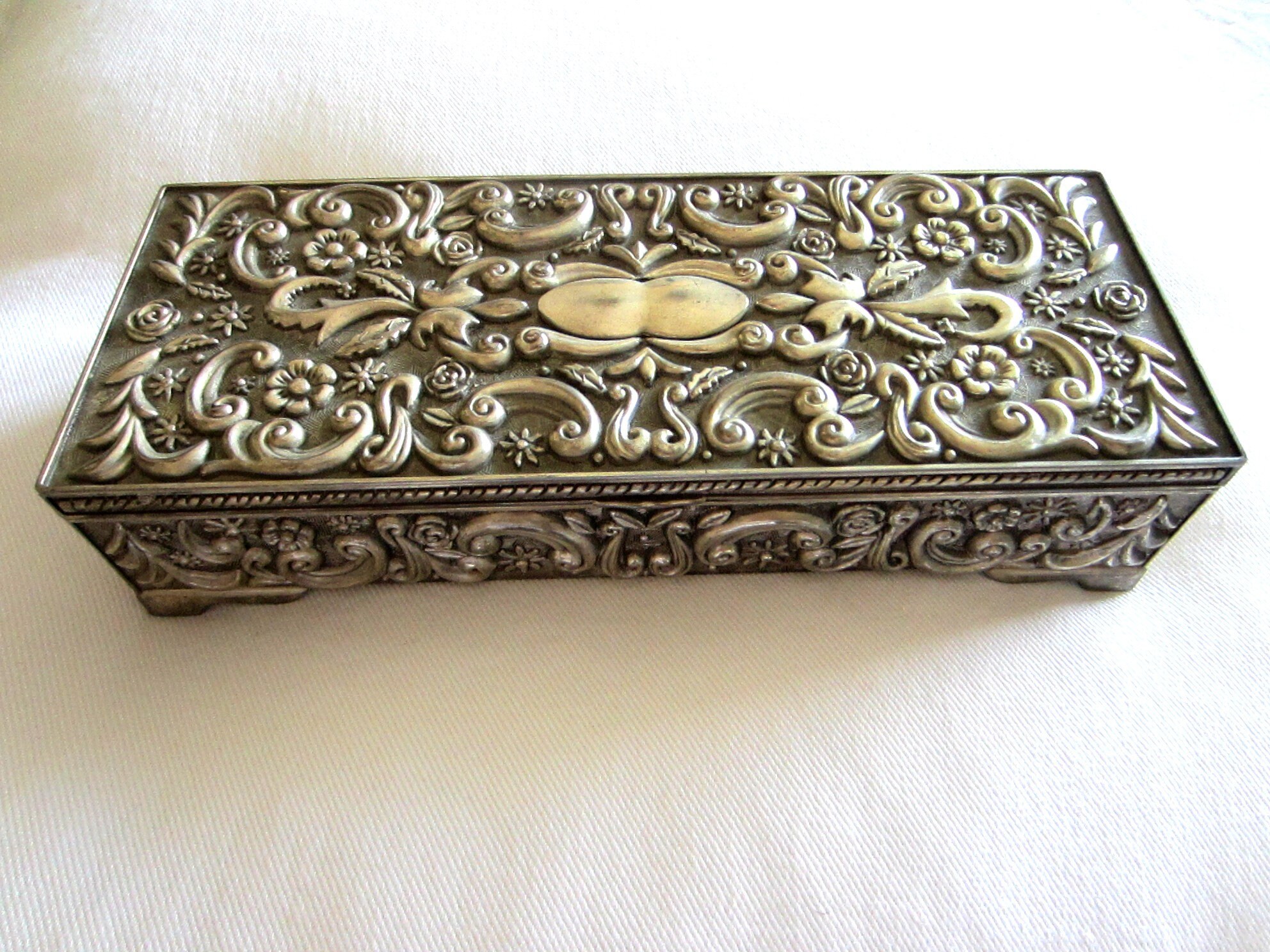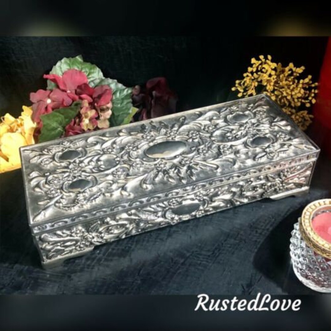 Jewelry Box Silver Plated Box Vintage Embossed Trinket Etsy